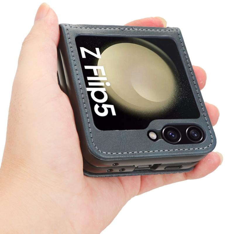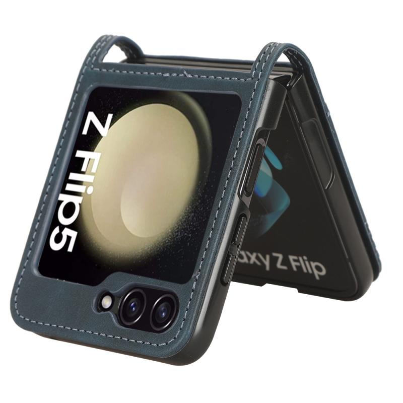 For Samsung Galaxy Z Flip5 Magnetic Buckle Retro Texture Leather Phone Case(Blue)