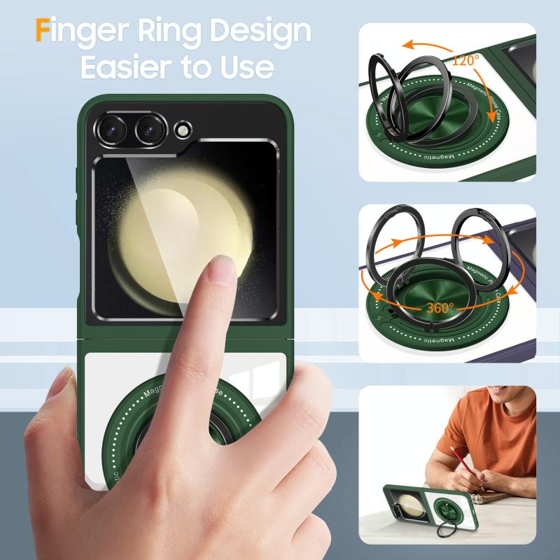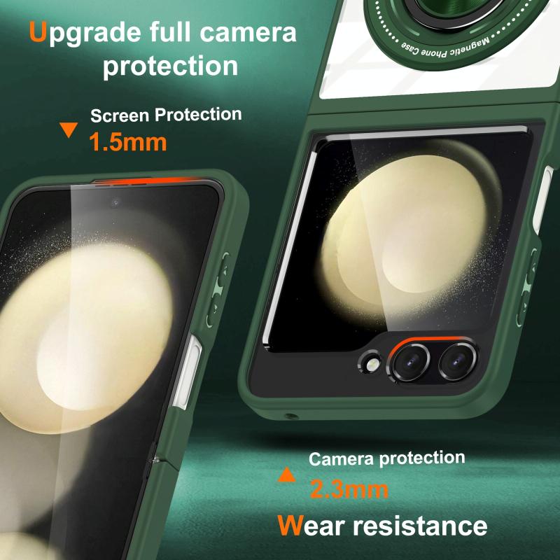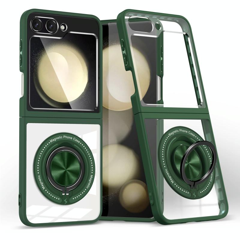 For Samsung Galaxy Z Flip5 Magnetic Rotating Ring Holder Phone Case(Dark Green)
