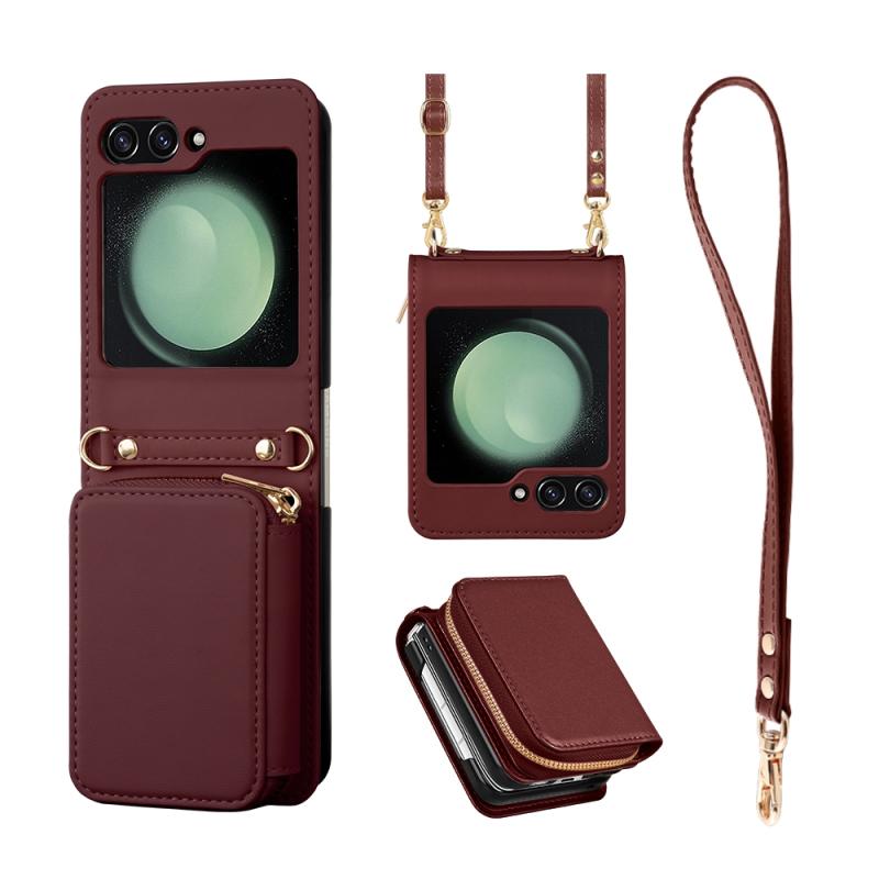 For Samsung Galaxy Z Flip5 Multifunctional Card Bag Phone Case(Wine Red)