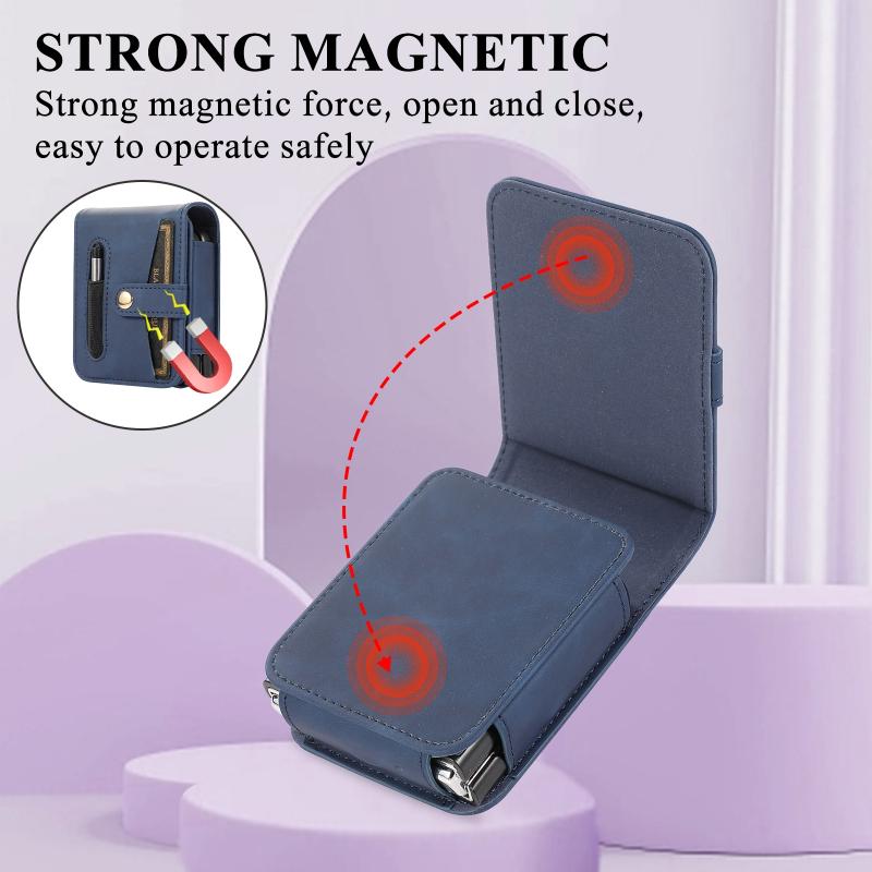 For Samsung Galaxy Z Flip5 Multifunctional Folding Phone Leather Case(Blue)