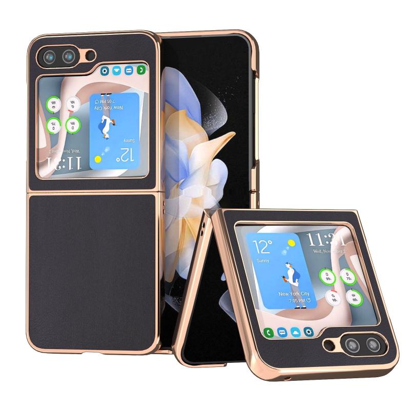 For Samsung Galaxy Z Flip5 Nano Electroplating Haze Texture PU Phone Case(Black)