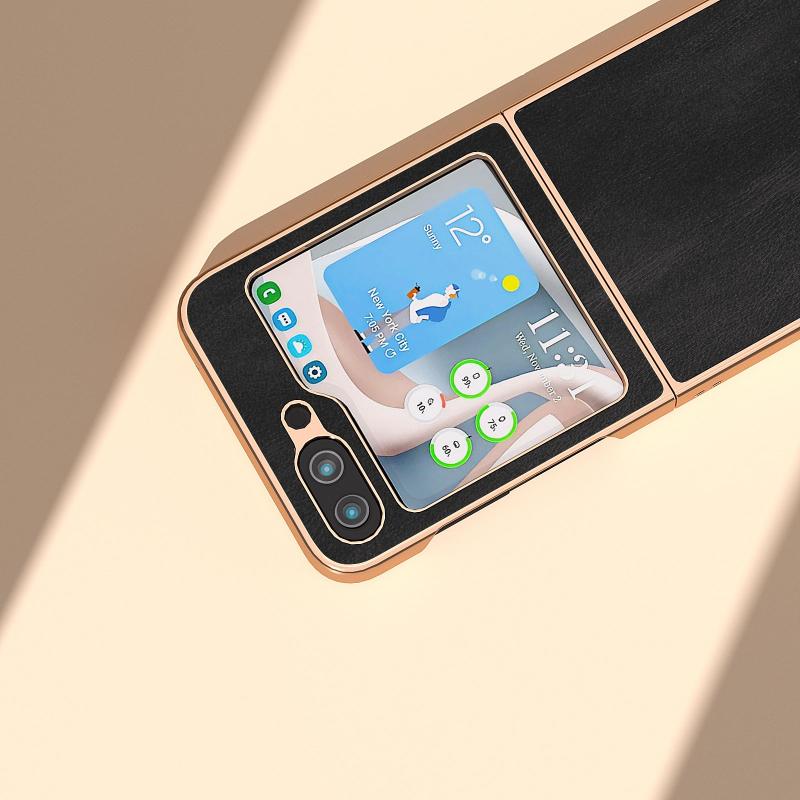 For Samsung Galaxy Z Flip5 Nano Plating Cowhide Texture PU Phone Case(Black)
