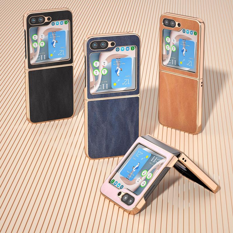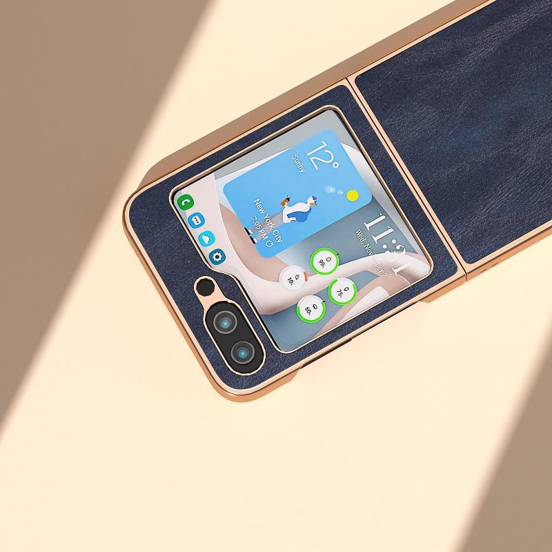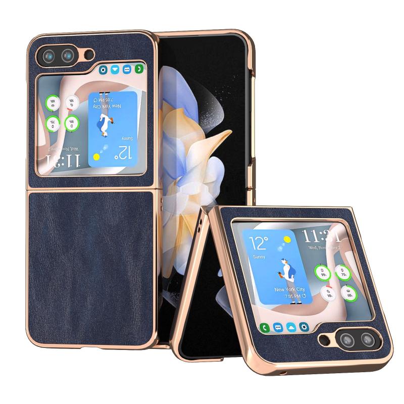 For Samsung Galaxy Z Flip5 Nano Plating Cowhide Texture PU Phone Case(Blue)