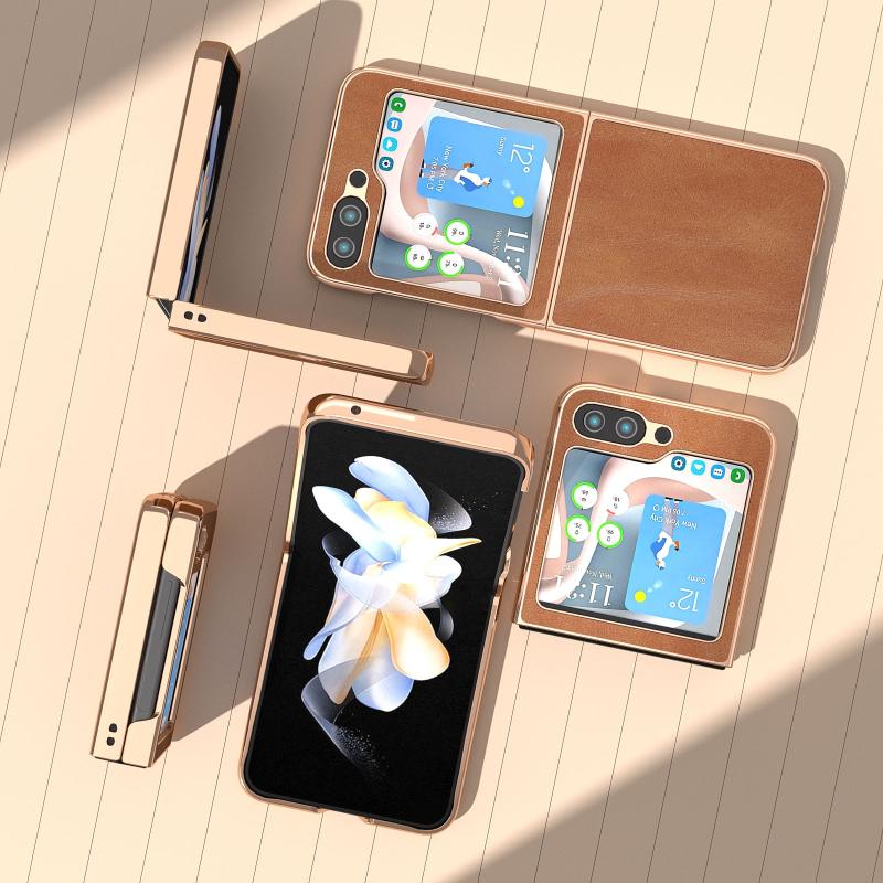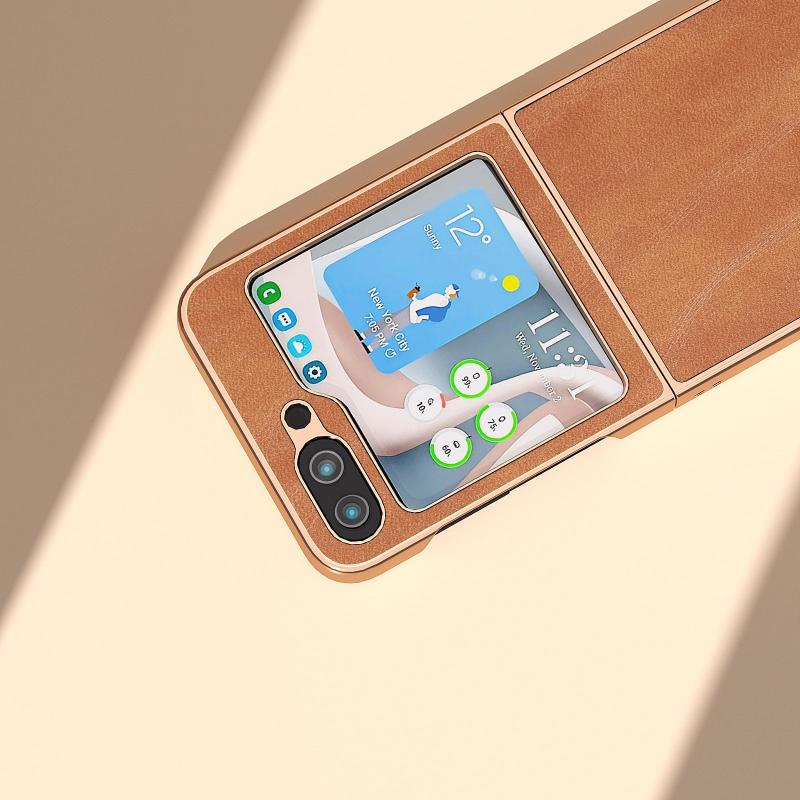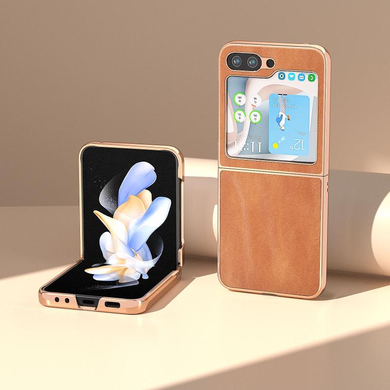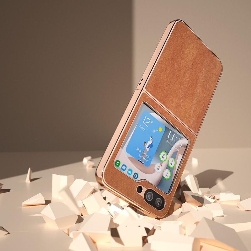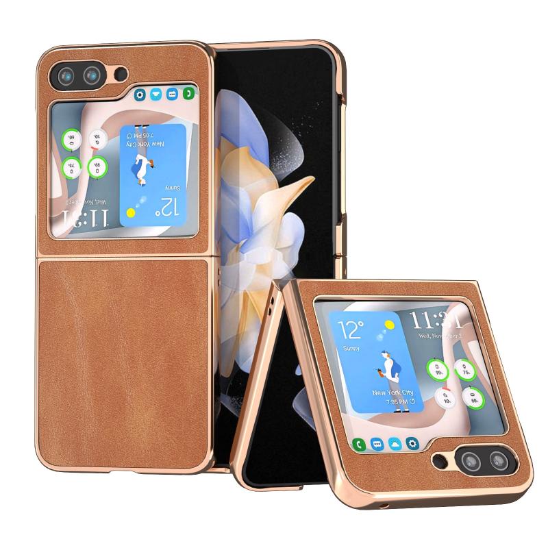 For Samsung Galaxy Z Flip5 Nano Plating Cowhide Texture PU Phone Case(Brown)