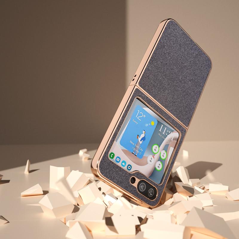For Samsung Galaxy Z Flip5 Nano Plating Glitter PU Phone Case(Black)