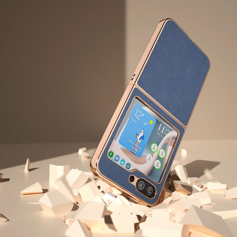 For Samsung Galaxy Z Flip5 Nano Plating Litchi Texture Phone Case(Sky Blue)