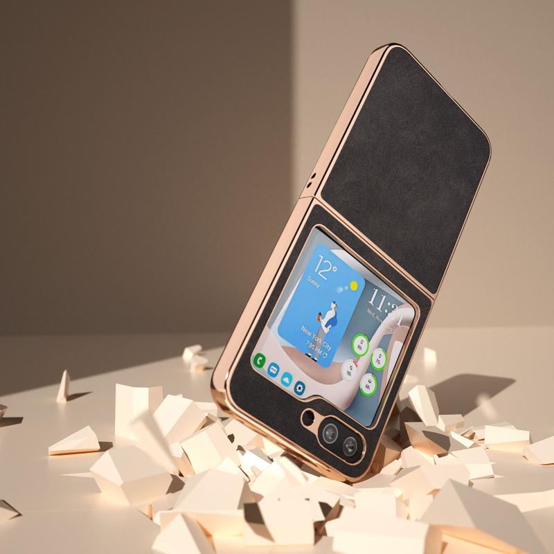 For Samsung Galaxy Z Flip5 Nano Plating Morocco Texture PU Phone Case(Black)
