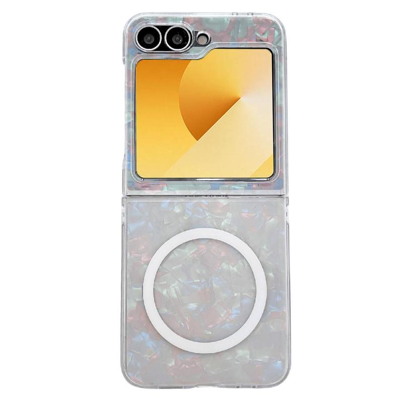 For Samsung Galaxy Z Flip5 Pearlescent Shell Texture MagSafe Phone Case(Beige)