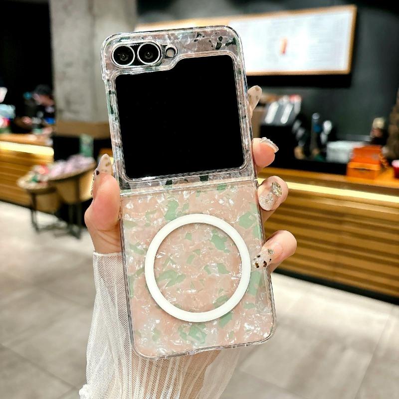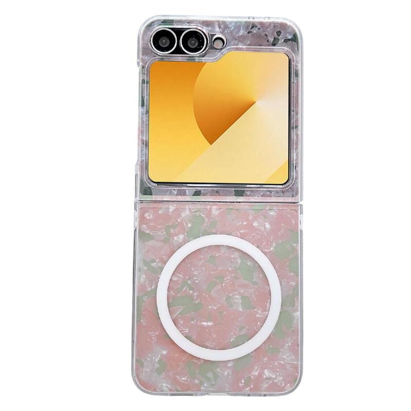 For Samsung Galaxy Z Flip5 Pearlescent Shell Texture MagSafe Phone Case(Pink Green)