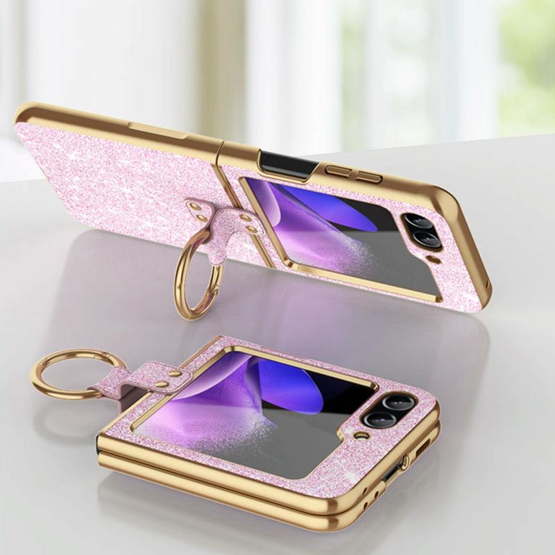 For Samsung Galaxy Z Flip5 Plating Gradient Color Glitter Phone Case With Ring Holder(Pink)