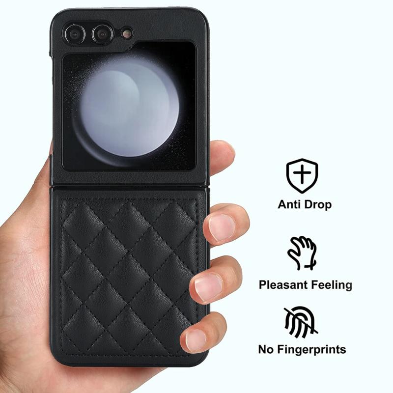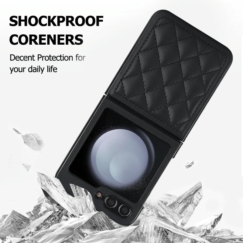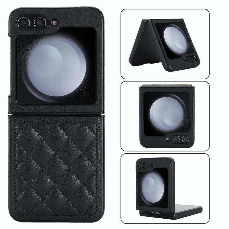 For Samsung Galaxy Z Flip5 Rhombic Microfiber Folding Phone Case(Black)