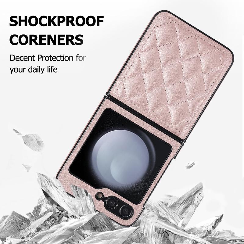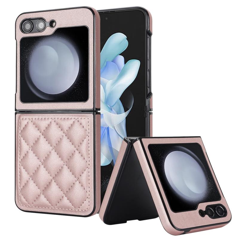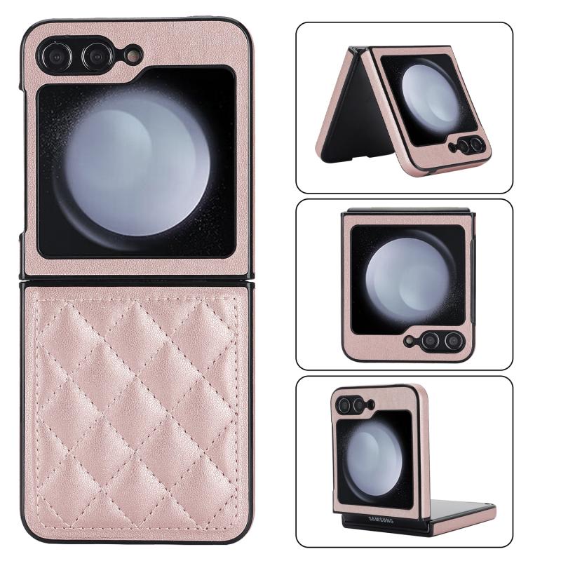 For Samsung Galaxy Z Flip5 Rhombic Microfiber Folding Phone Case(Pink)
