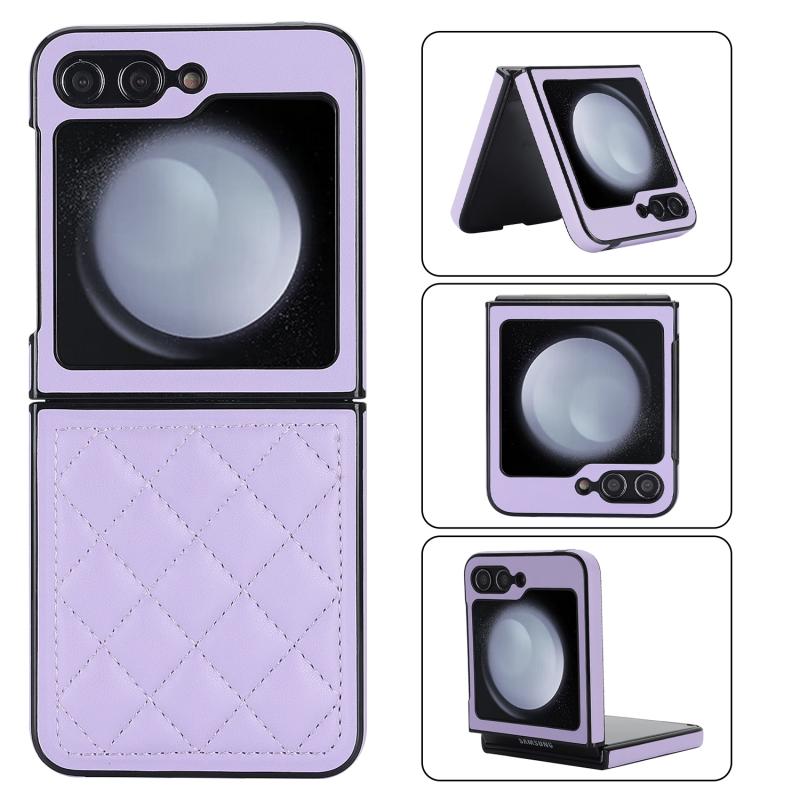 For Samsung Galaxy Z Flip5 Rhombic Microfiber Folding Phone Case(Purple)