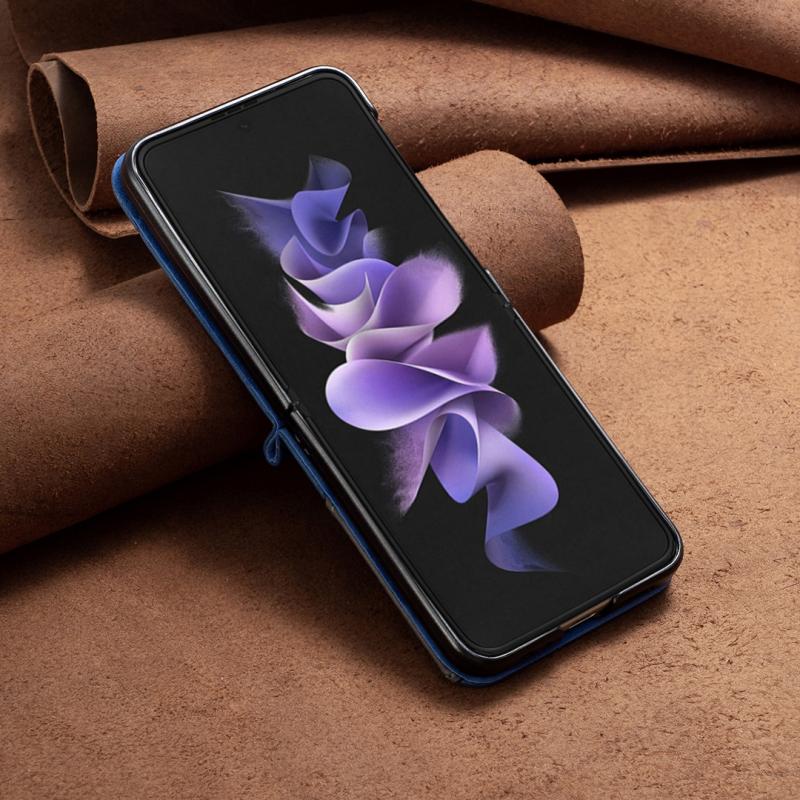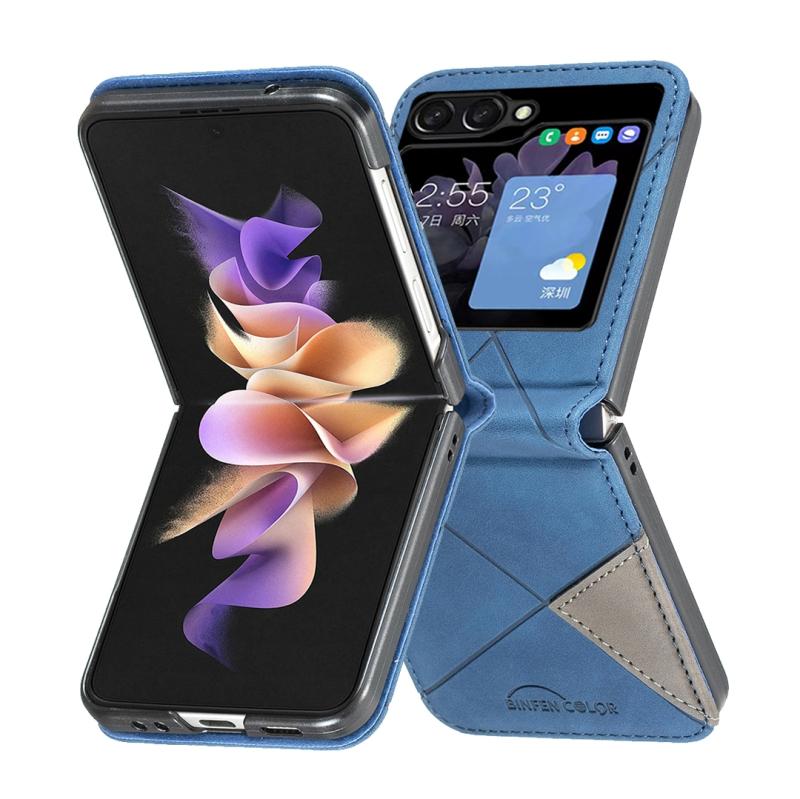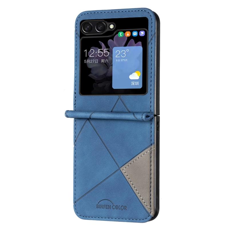 For Samsung Galaxy Z Flip5 Rhombus Texture Leather Phone Case(Blue)