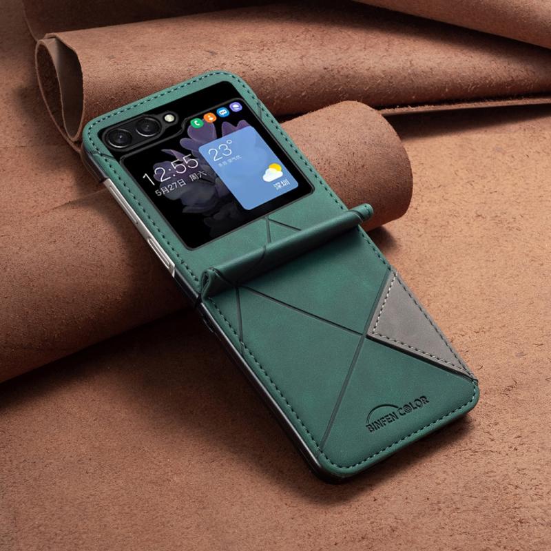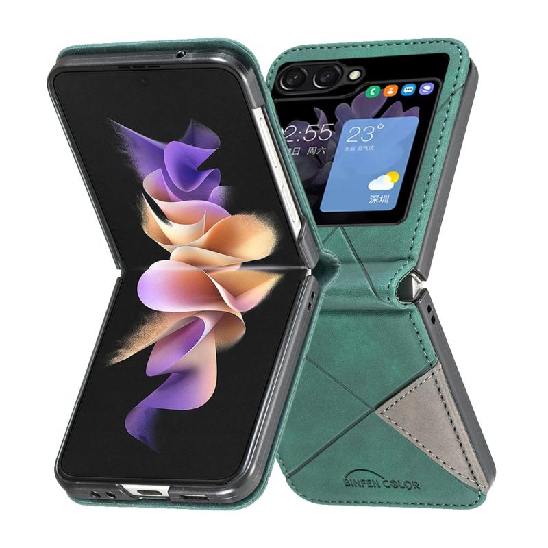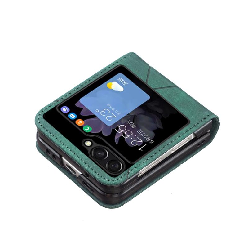 For Samsung Galaxy Z Flip5 Rhombus Texture Leather Phone Case(Green)