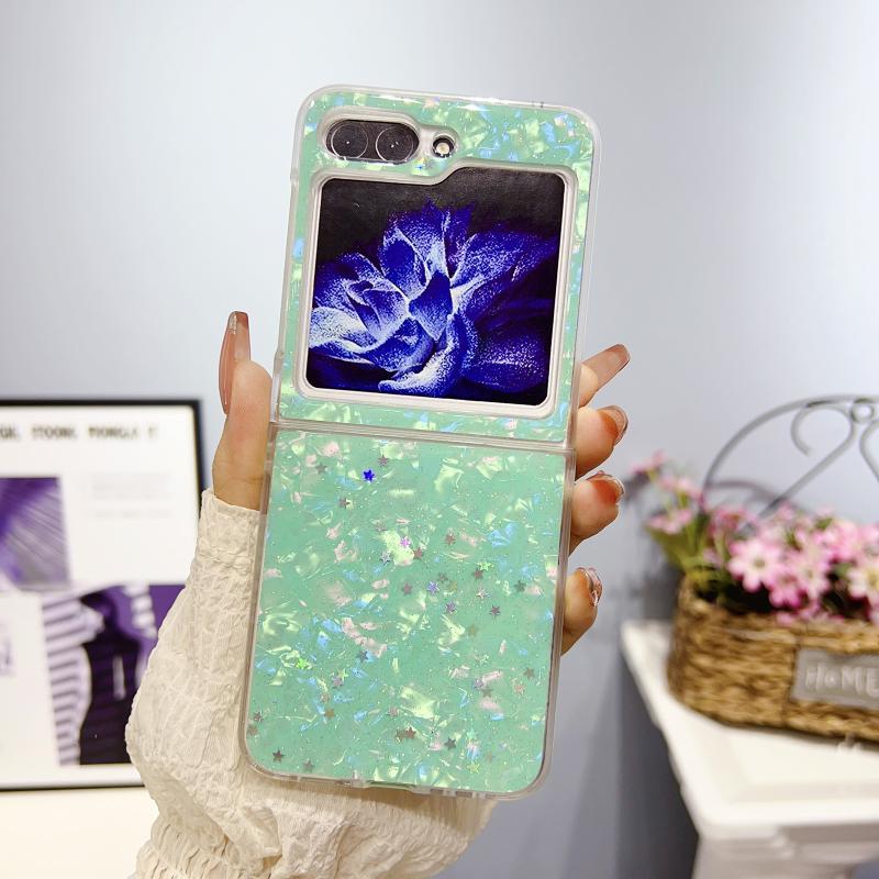 For Samsung Galaxy Z Flip5 Shell Pattern Glitter Shockproof Phone Case(Green)