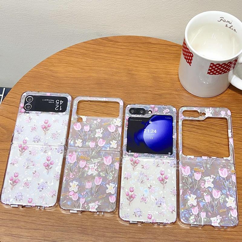For Samsung Galaxy Z Flip5 Shell Texture Flower Pattern Protective Phone Case(Floral)