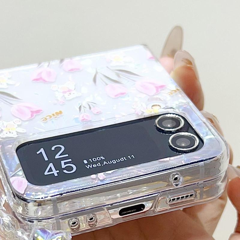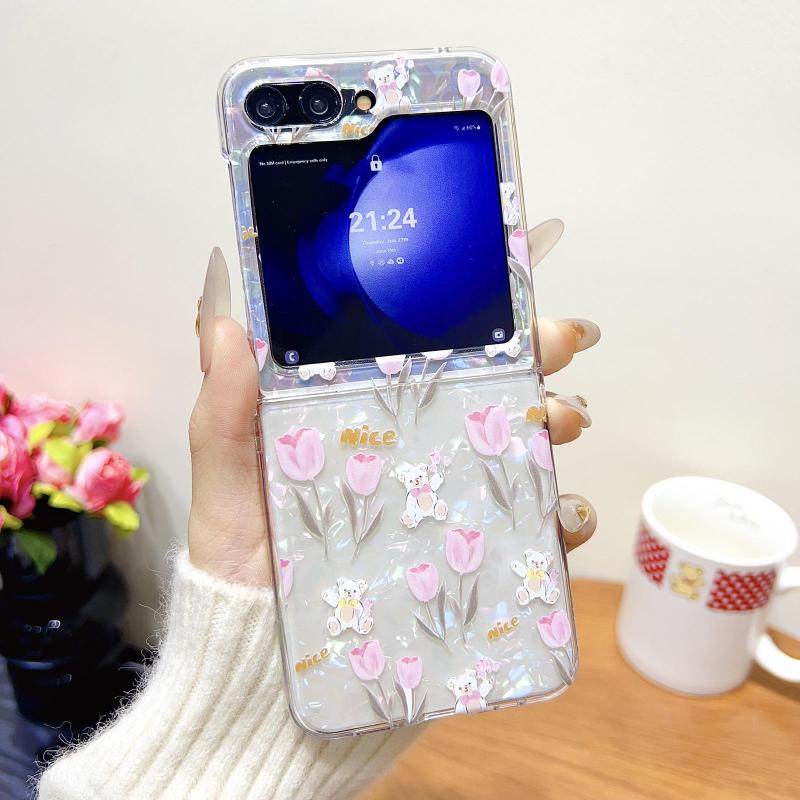 For Samsung Galaxy Z Flip5 Shell Texture Flower Pattern Protective Phone Case(Tulip)