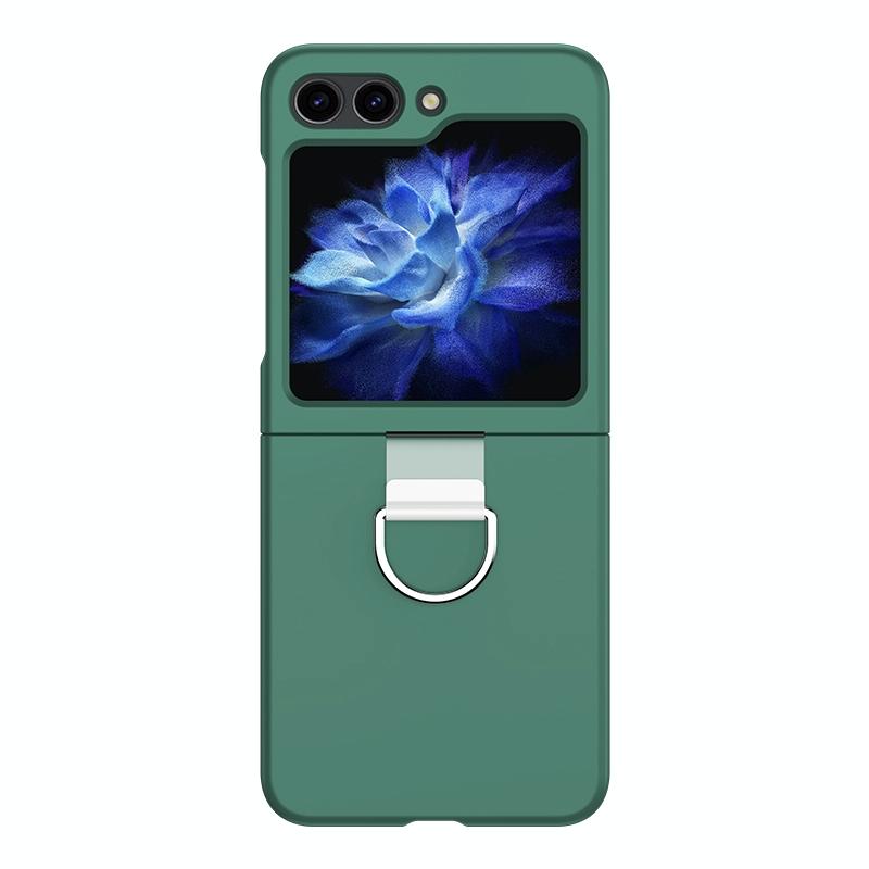 For Samsung Galaxy Z Flip5 Skin Feel PC Foldable Phone Case with Ring(Dark Green)