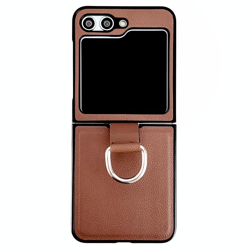For Samsung Galaxy Z Flip5 Solid Color Litchi Leather Texture Protective Phone Case with Ring(Brown)