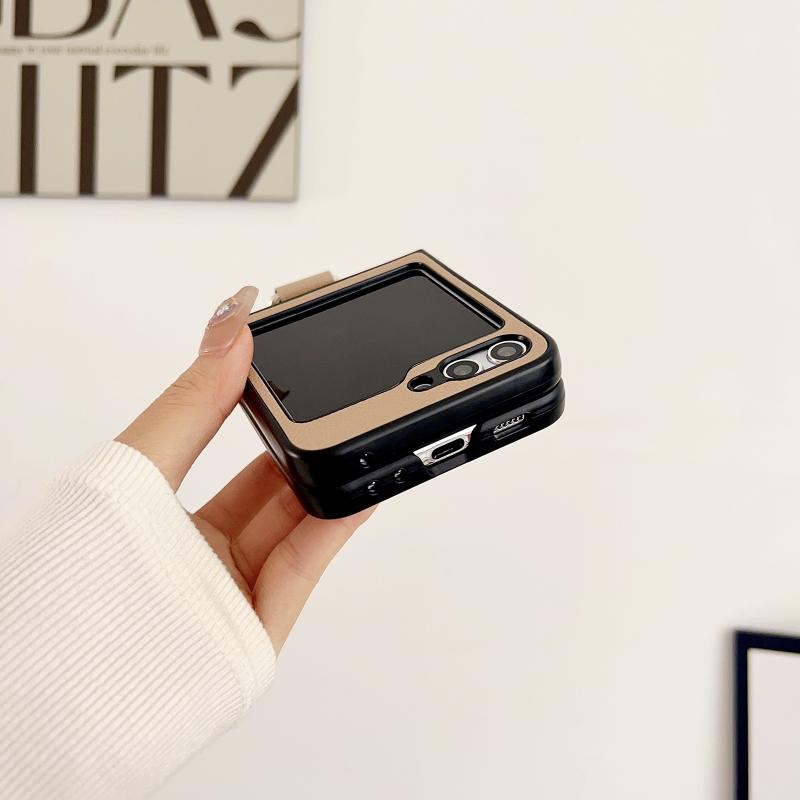 For Samsung Galaxy Z Flip5 Solid Color Litchi Leather Texture Protective Phone Case with Ring(Red)