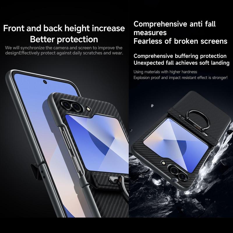 For Samsung Galaxy Z Flip5 SULADA 600D Kevlar Texture PC Shockproof Phone Case with Rng Holder(Black) (SULADA)
