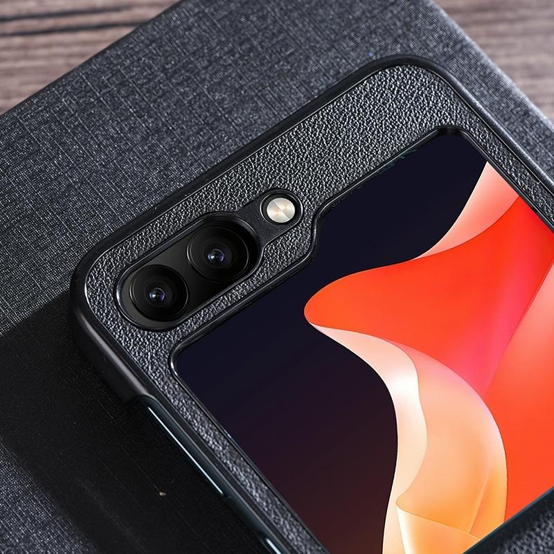 For Samsung Galaxy Z Flip5 Three-stage Folding Leather Texture Phone Case(Blue)