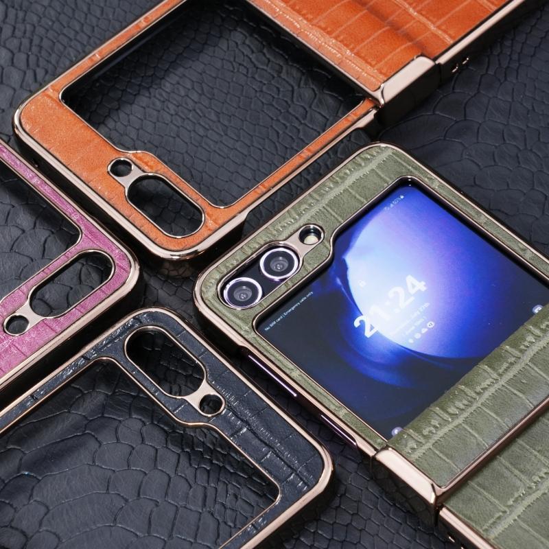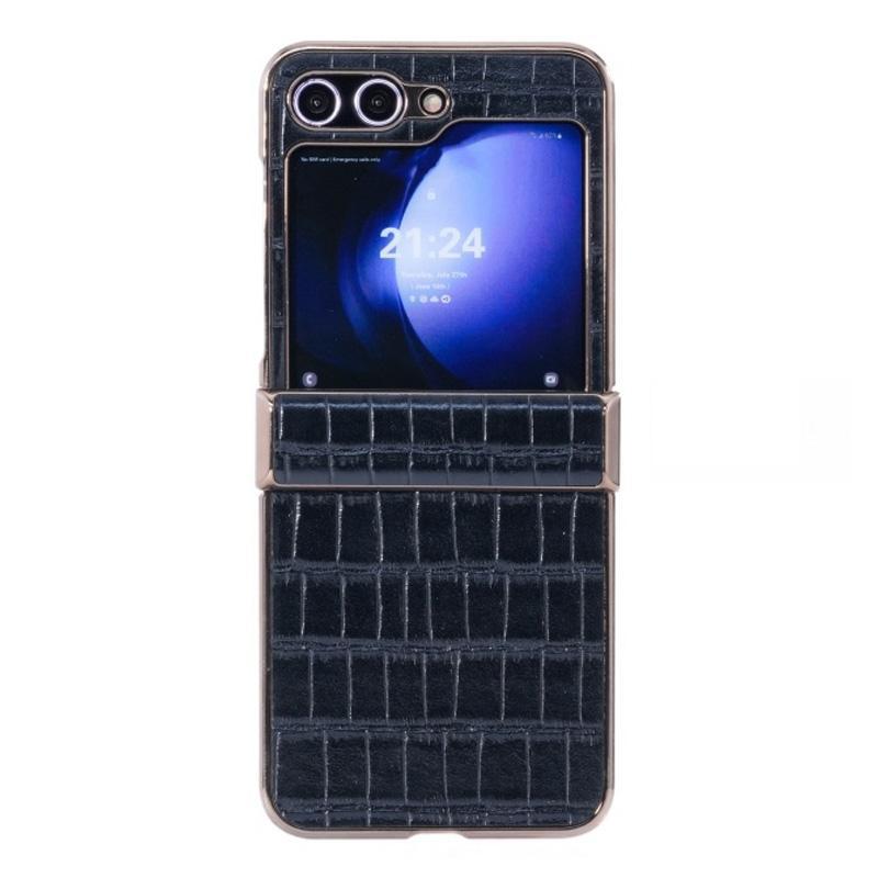 For Samsung Galaxy Z Flip6 5G Electroplated PC Crocodile Pattern Folding Phone Case(Black)