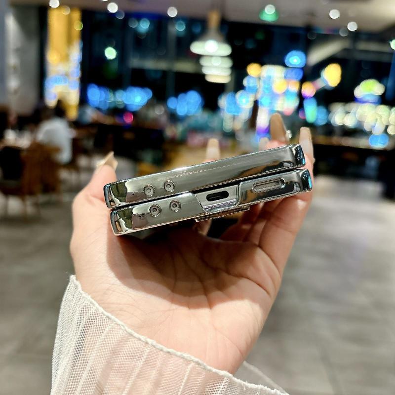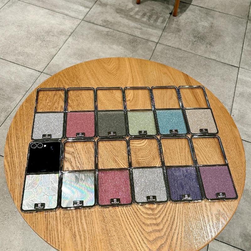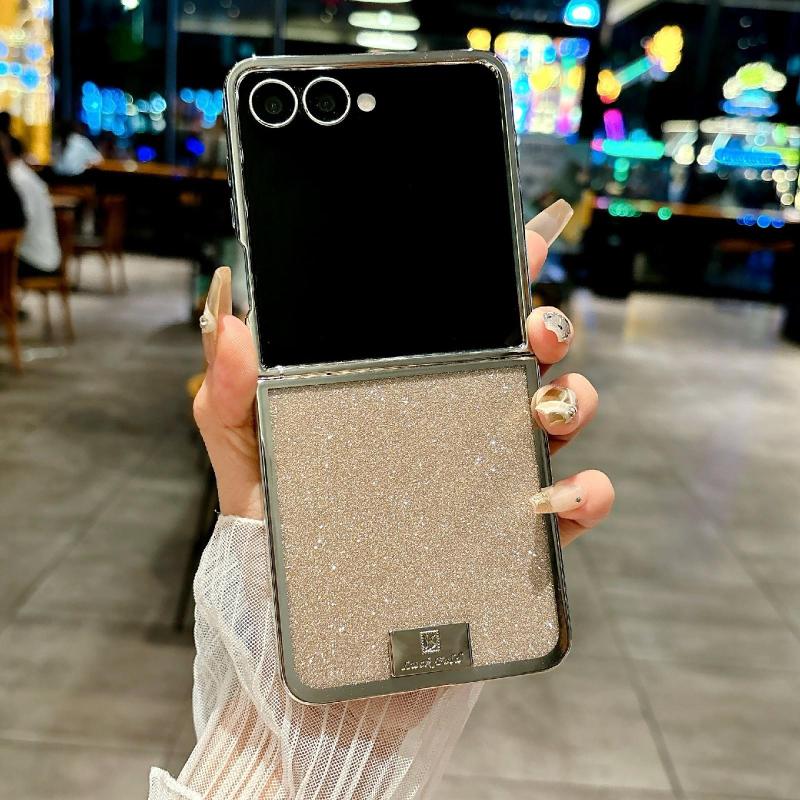 For Samsung Galaxy Z Flip6/7 FE Plating Frame Glitter Paper Nameplate Full Coverage Phone Case(Gold)
