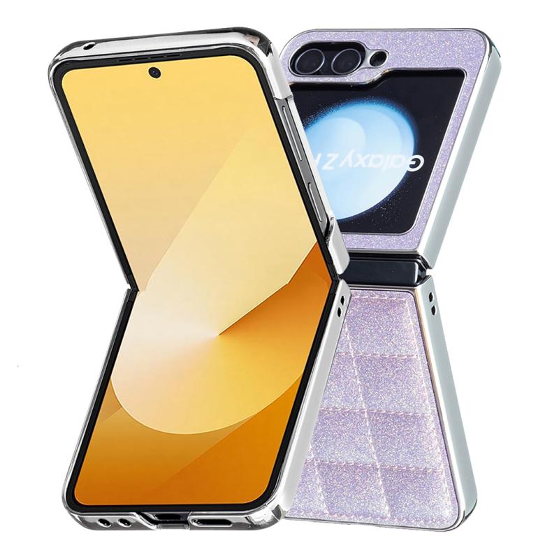 For Samsung Galaxy Z Flip6 Electroplating Square Glitter PU Phone Case(Purple)