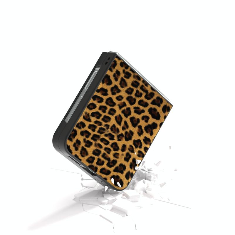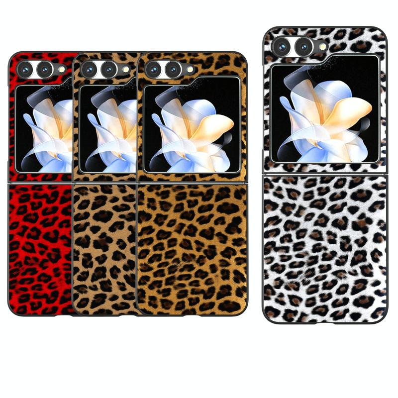 For Samsung Galaxy Z Flip6 / Flip7 FE Black Frame Leopard Full Coverage Phone Case(Champagne Gold)