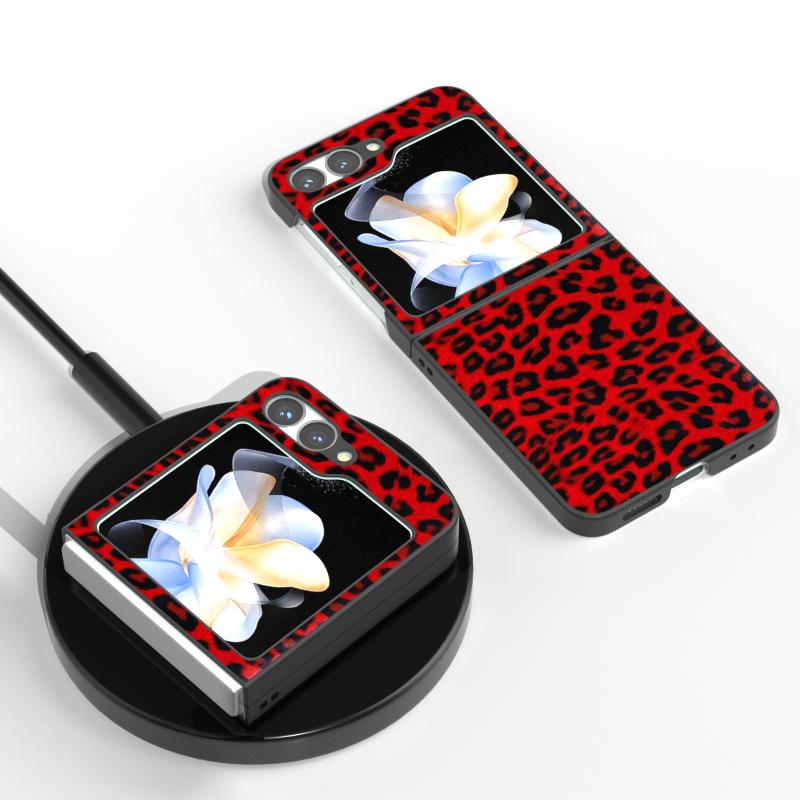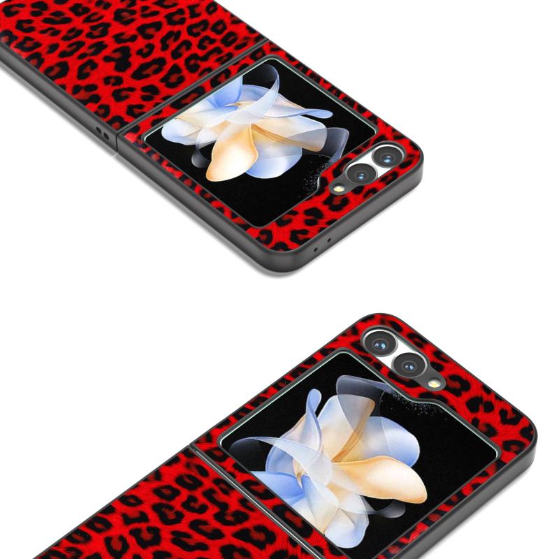 For Samsung Galaxy Z Flip6 / Flip7 FE Black Frame Leopard Full Coverage Phone Case(Red)