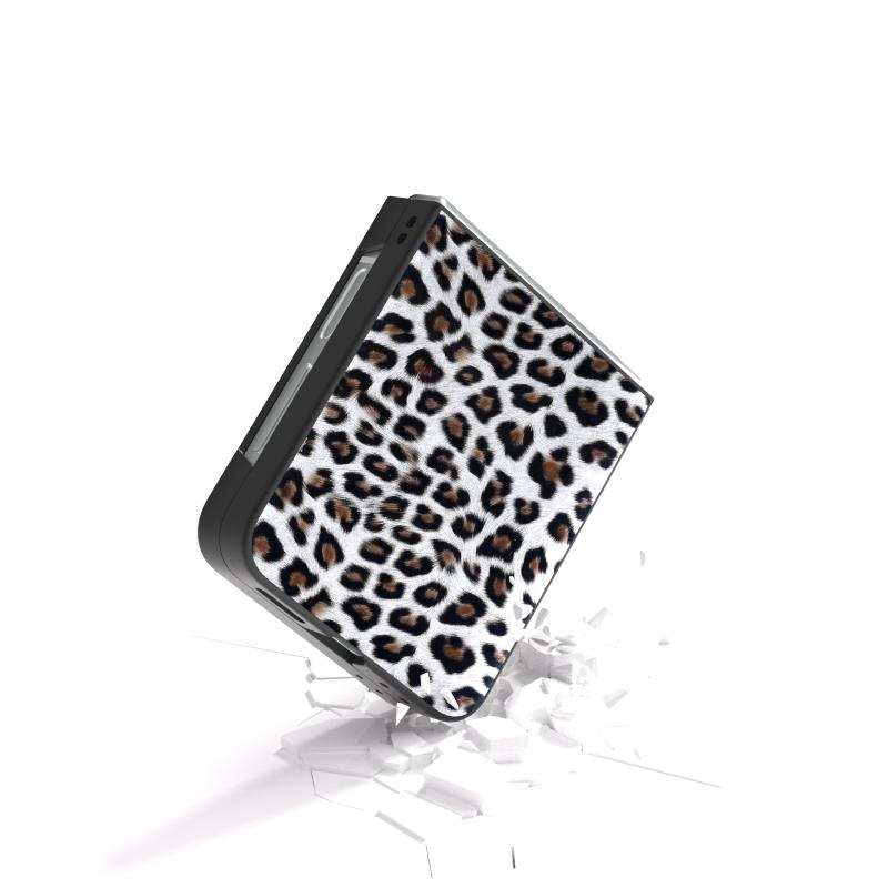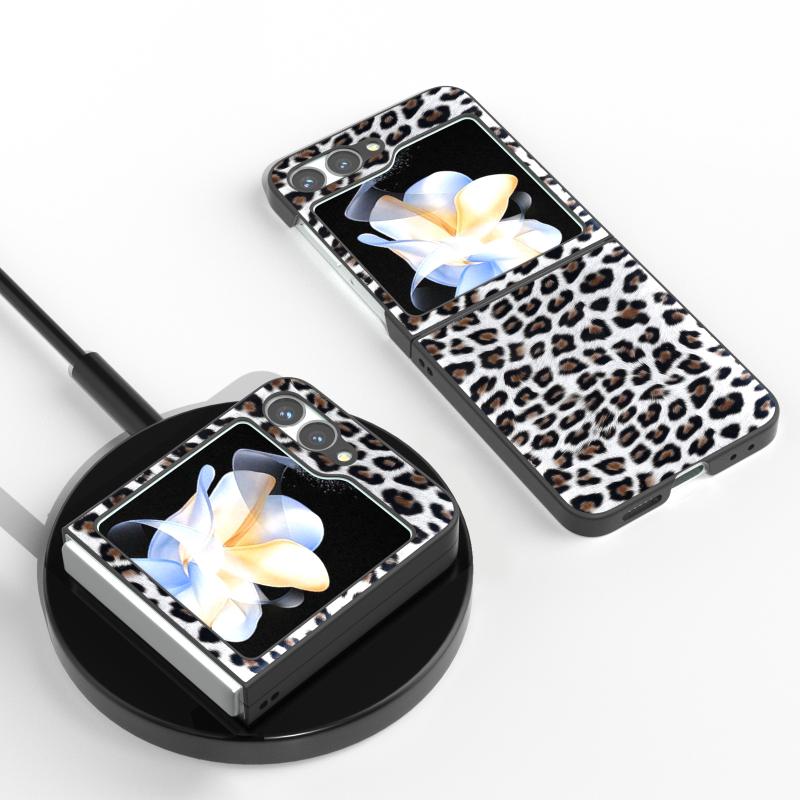 For Samsung Galaxy Z Flip6 / Flip7 FE Black Frame Leopard Full Coverage Phone Case(Silver)