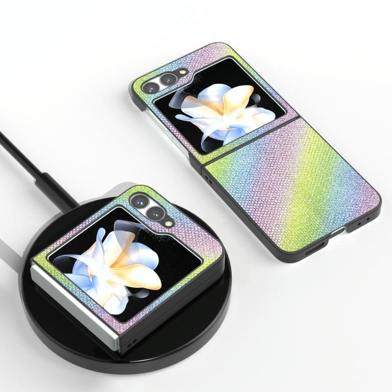For Samsung Galaxy Z Flip6 / Flip7 FE Diamond Series Black Frame Full Coverage Phone Case(Rainbow)