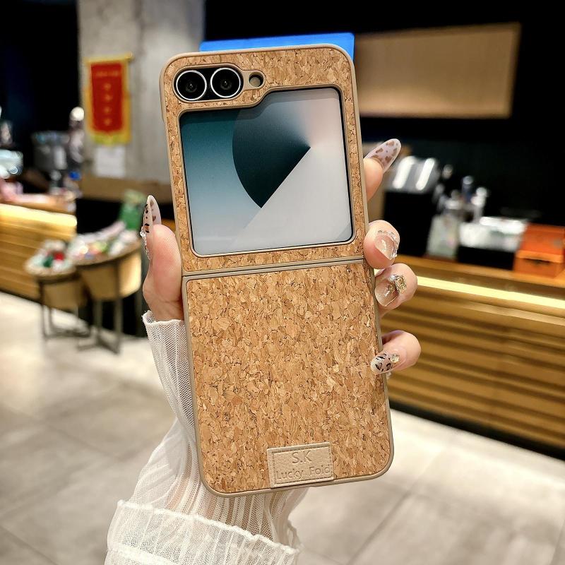 For Samsung Galaxy Z Flip6 / Flip7 FE Lamb Leather Cork PU + PC Brown Phone Case(Leather Texture)
