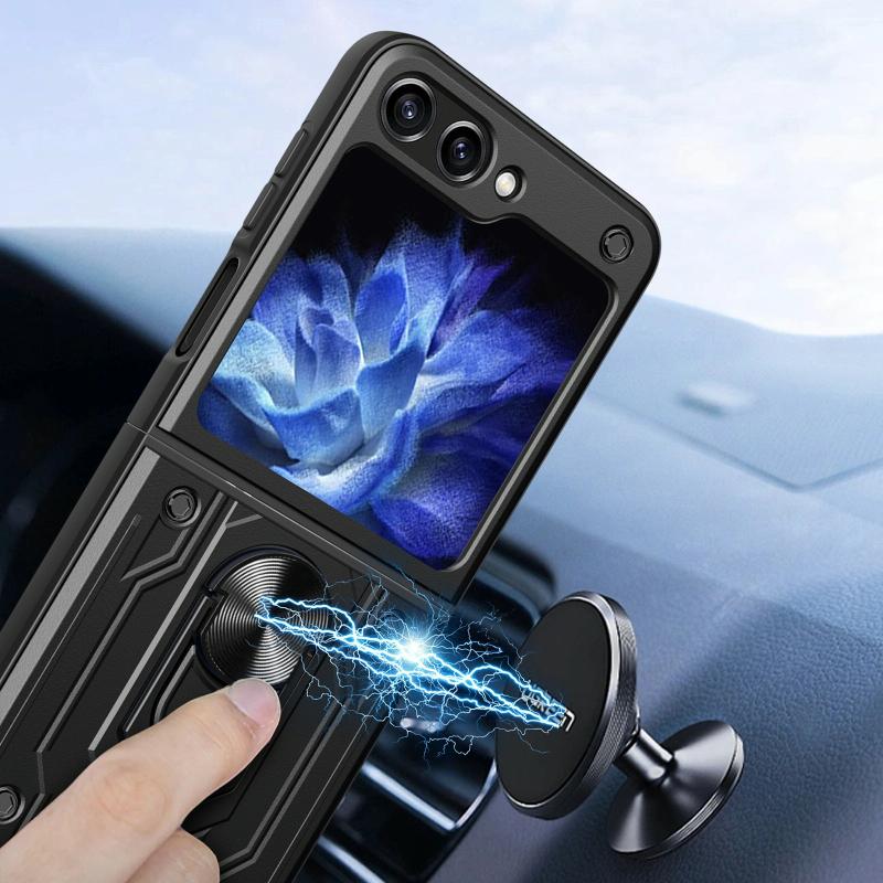 For Samsung Galaxy Z Flip6 / Flip7 FE Magnetic Holder TPU+PC Phone Case(Grey)