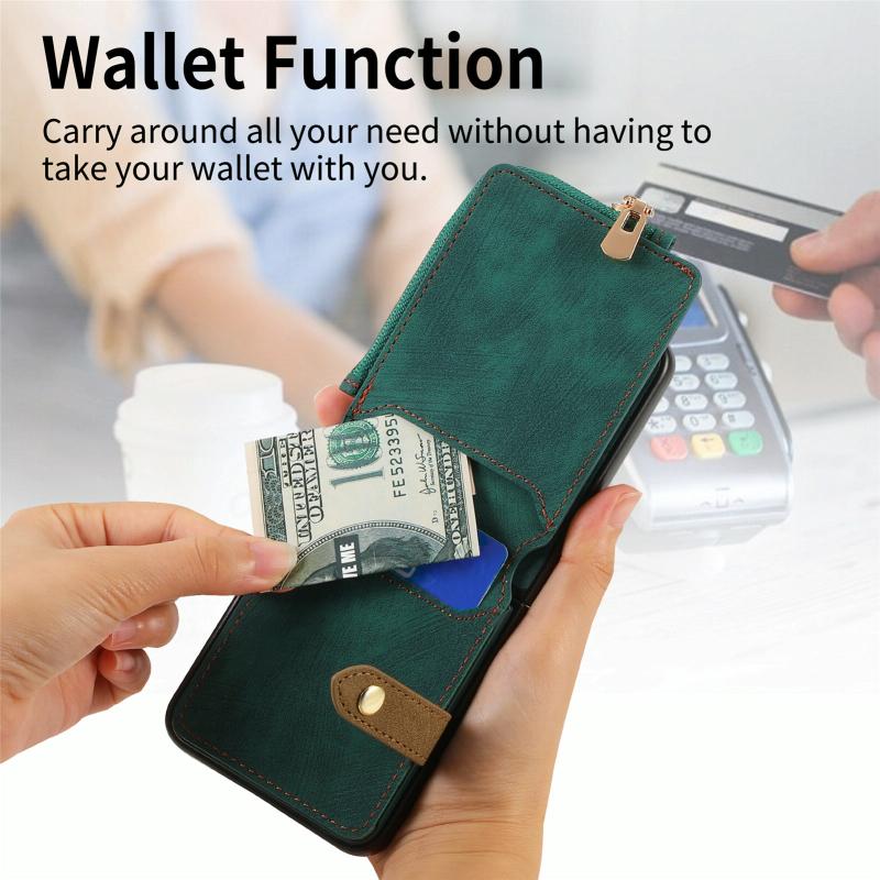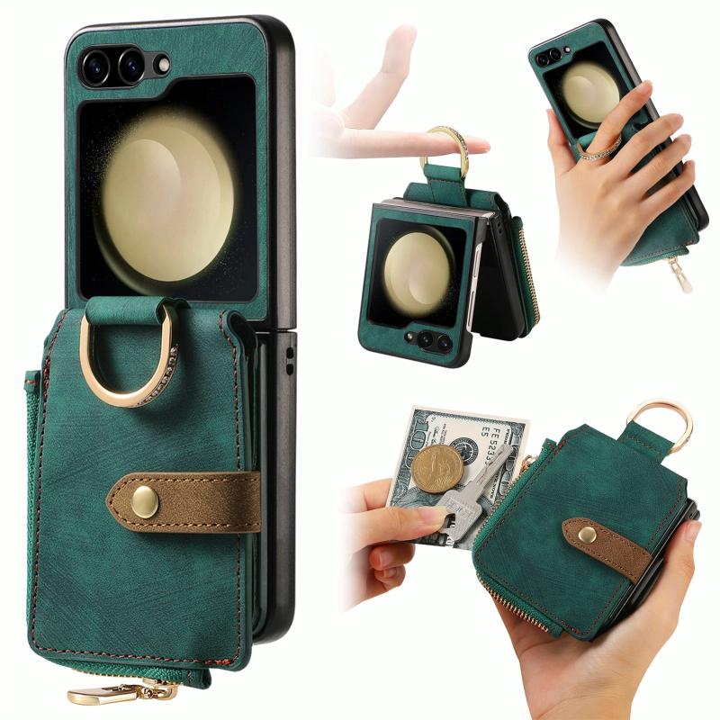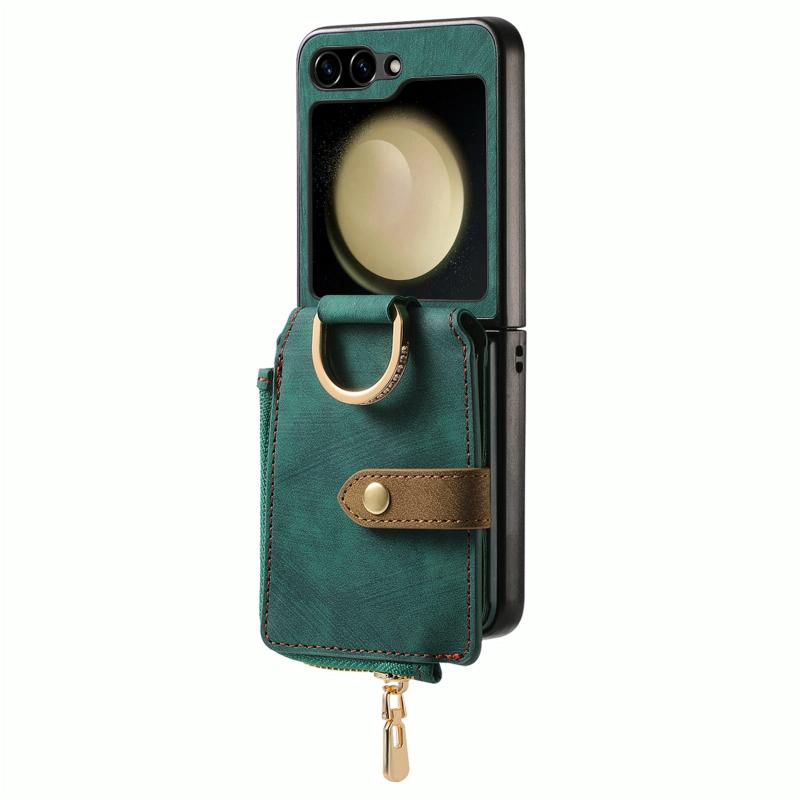For Samsung Galaxy Z Flip6 / Flip7 FE Retro Ring Vertical Zipper Wallet Phone Case(Green)
