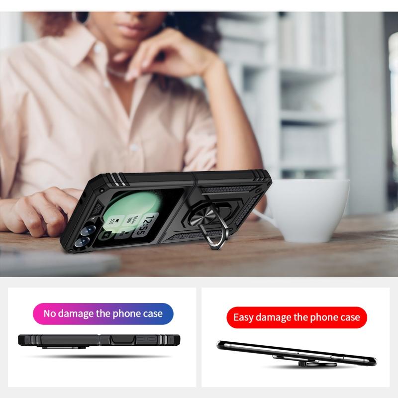 For Samsung Galaxy Z Flip6 / Flip7 FE Shockproof TPU + PC Phone Case with Holder(Black)