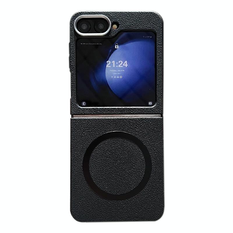 For Samsung Galaxy Z Flip6 Leather Texture Design MagSafe Full Coverage Phone Case(Black)