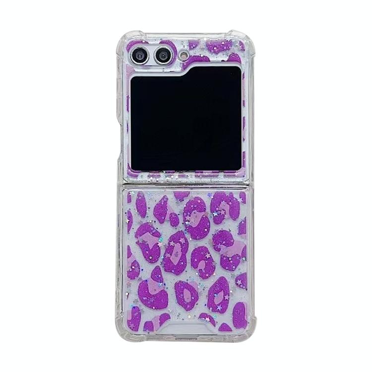 For Samsung Galaxy Z Flip6 Leopard Glitter Sequins TPU Phone Case(Purple)