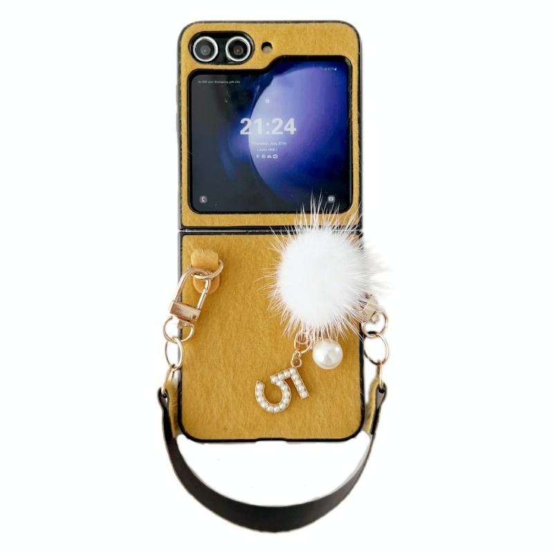For Samsung Galaxy Z Flip6 Plush Full Coverage Phone Case with Strap(Yellow)