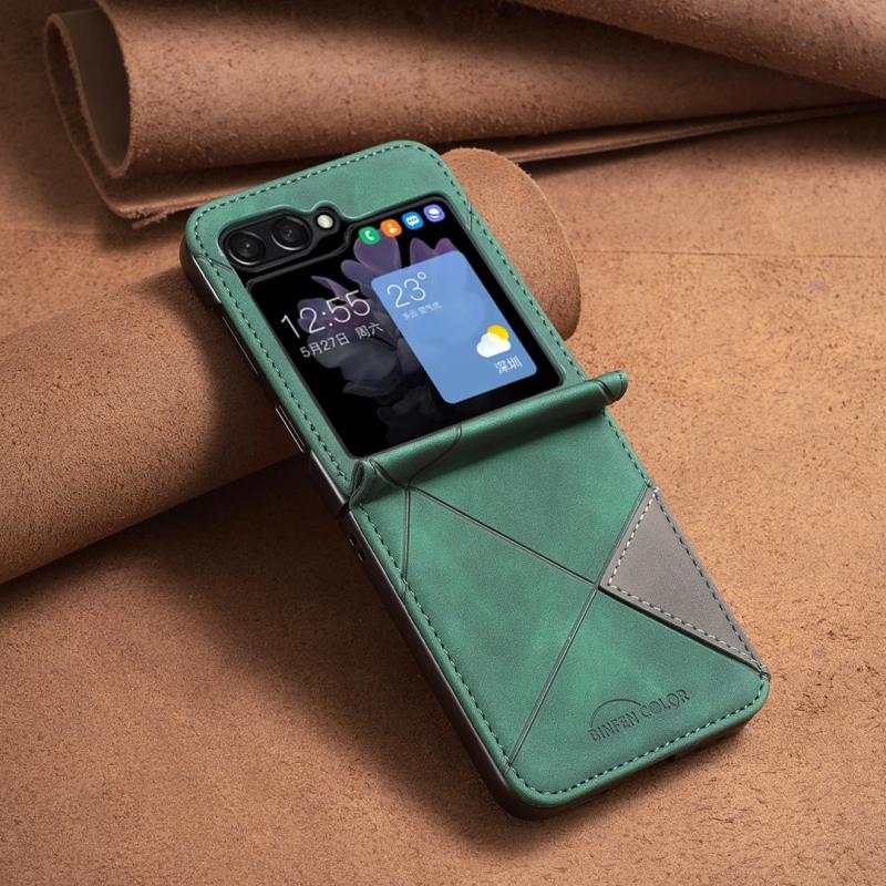 For Samsung Galaxy Z Flip6 Rhombus Texture PU + PC Shockproof Phone Case(Green)