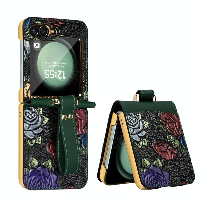 For Samsung Galaxy Z Flip6 VIETAO Integrated Embossed Pattern Full Coverage Phone Case with Wrist Strap(Green) (VIETAO)