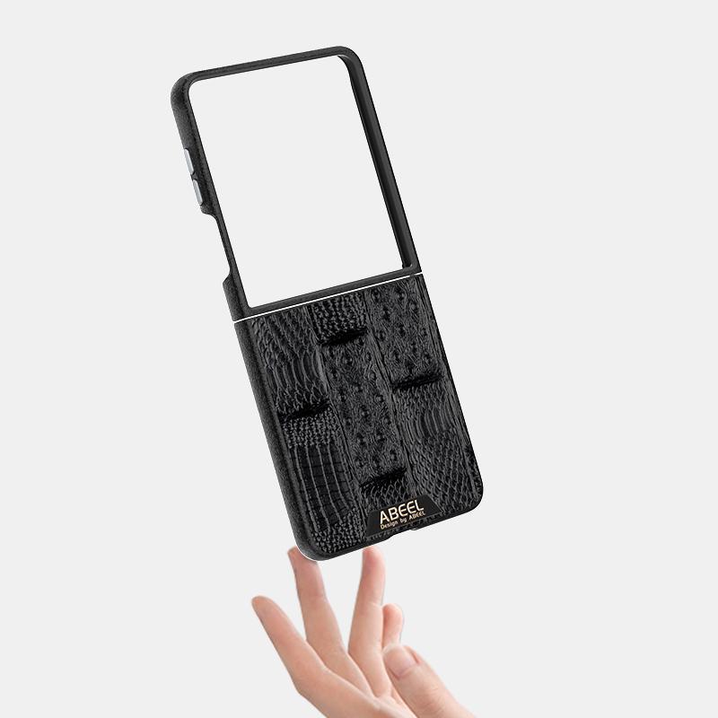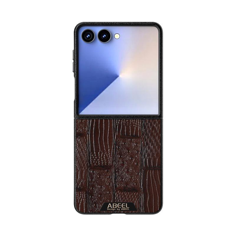 For Samsung Galaxy Z Flip7 5G ABEEL Beast Pattern 6D Micro-Embossed MagSafe Genuine Leather Phone Case(Brown)