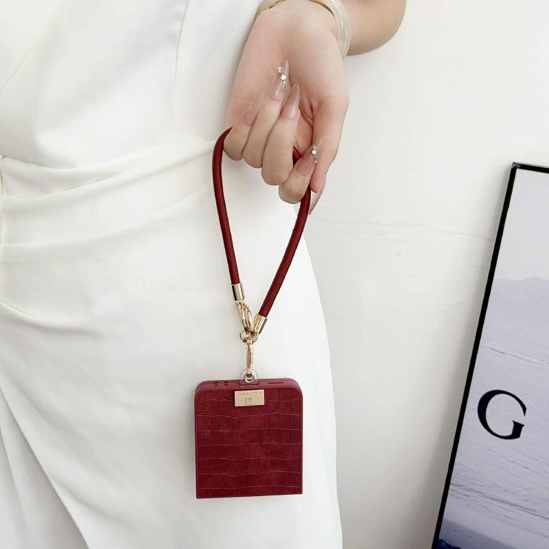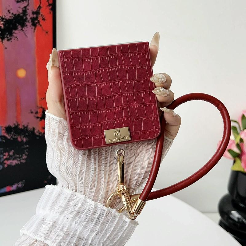 For Samsung Galaxy Z Flip7 5G Crocodile Texture TPU Phone Case With Strap(Red)
