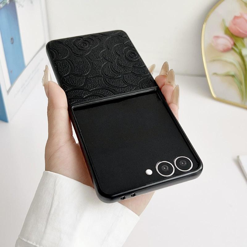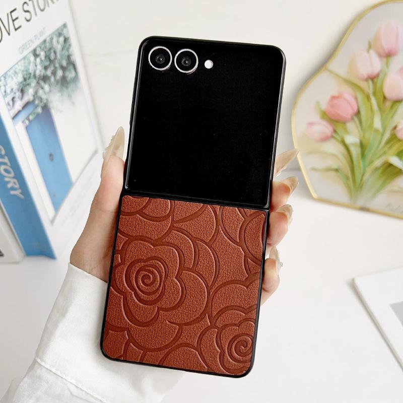 For Samsung Galaxy Z Flip7 5G Impression Camellia Pattern Protective Phone Case(Brown)