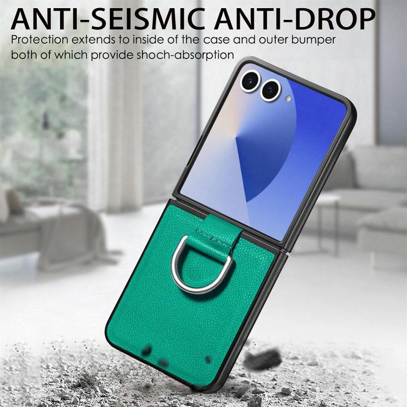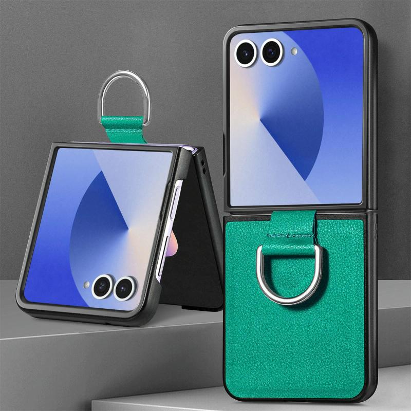 For Samsung Galaxy Z Flip7 5G Litchi Texture Leather Ring Phone Case(Green)
