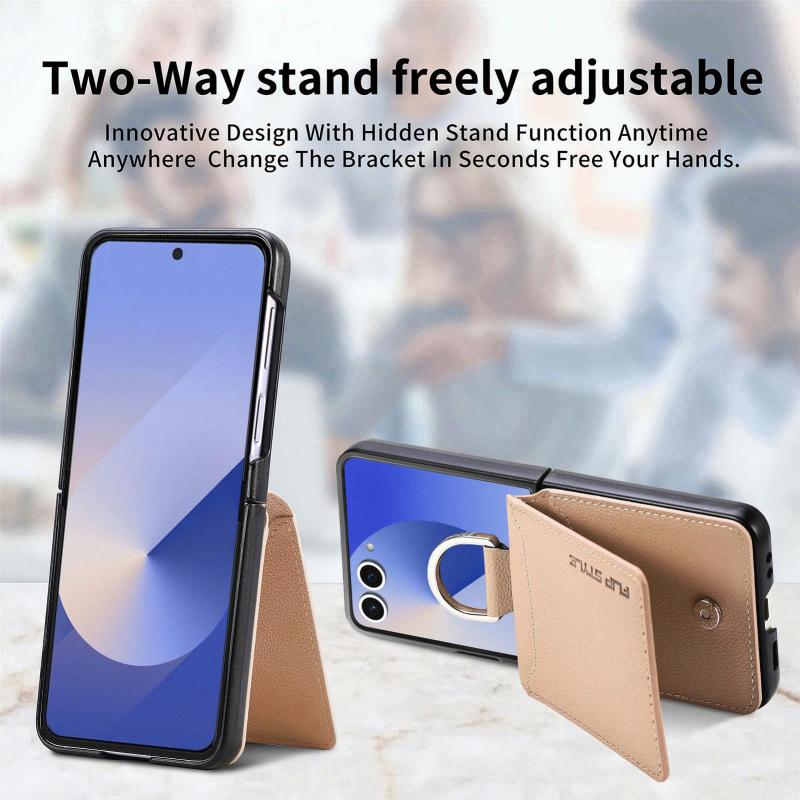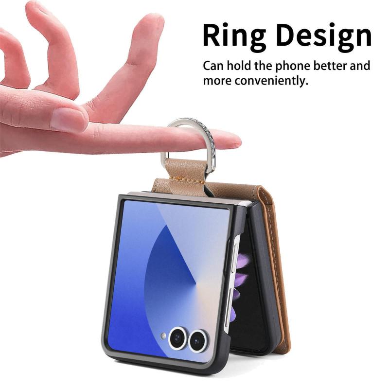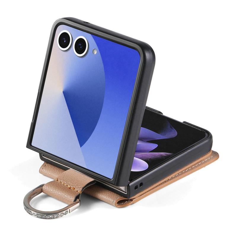 For Samsung Galaxy Z Flip7 5G Litchi Texture Leather Ring Wallet Phone Case(Khaki)