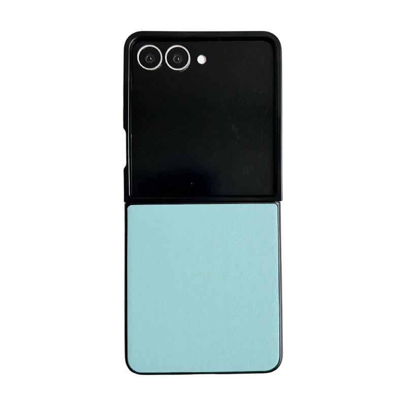 For Samsung Galaxy Z Flip7 5G Morandi Solid Color Leather Texture Phone Case(Blue Green)
