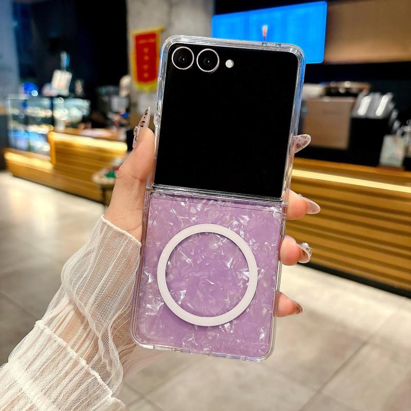 For Samsung Galaxy Z Flip7 5G Pearlescent Shell Texture MagSafe Phone Case(White)